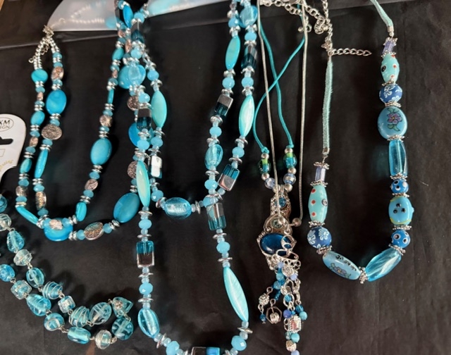 5 soorten kettingen alemaal in de kleur aqua...