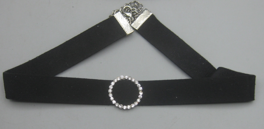 Deze elegante zwarte fluwelen choker is afgewerkt met een sprankelende strass cirkel in het midden. De choker heeft een tijdloos design en is eenvoudig te combineren met zowel casual als feestelijke outfits.