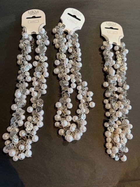 Set van 3 hoogwaardige MKM-parelkettingen, versierd met kleine zilverkleurige muntbedeltjes.