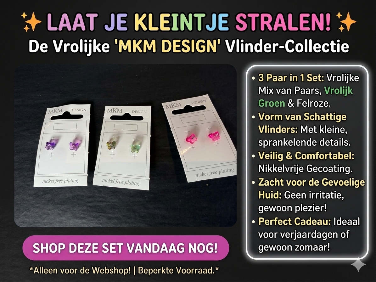 3 paar kinderoorbellen in de vorm van een vlinder