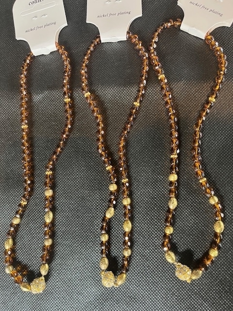 3 stuks unieke Amber & Gouden Kettingen - Decoratieve 'Front-Sluiting' (MKM Stijl)