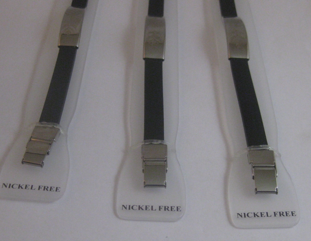3 dezelfde armbanden met relief in het rvs plaatje.