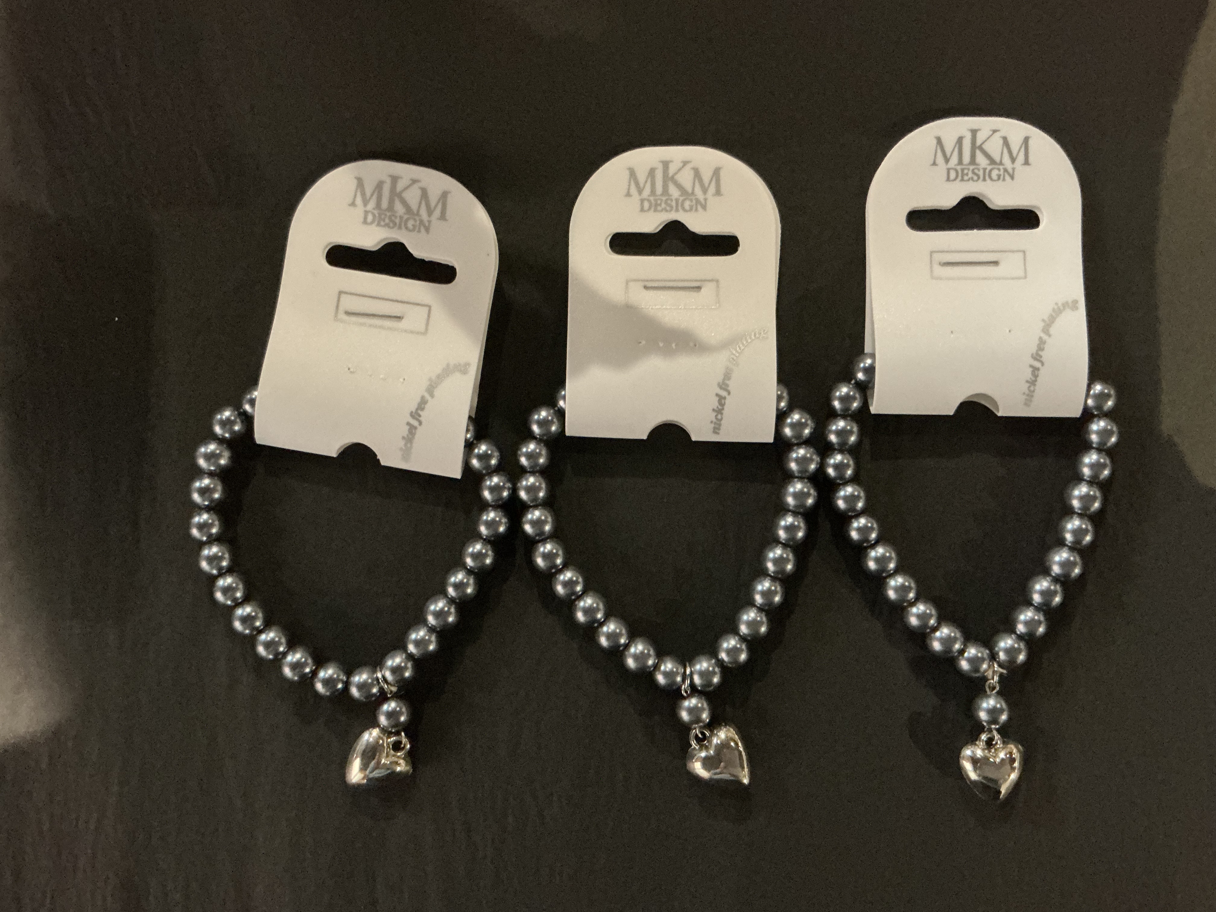 3 prachtige armbanden met parel en een hangertje in de vorm van een hart de armbanden zijn rekbaar...