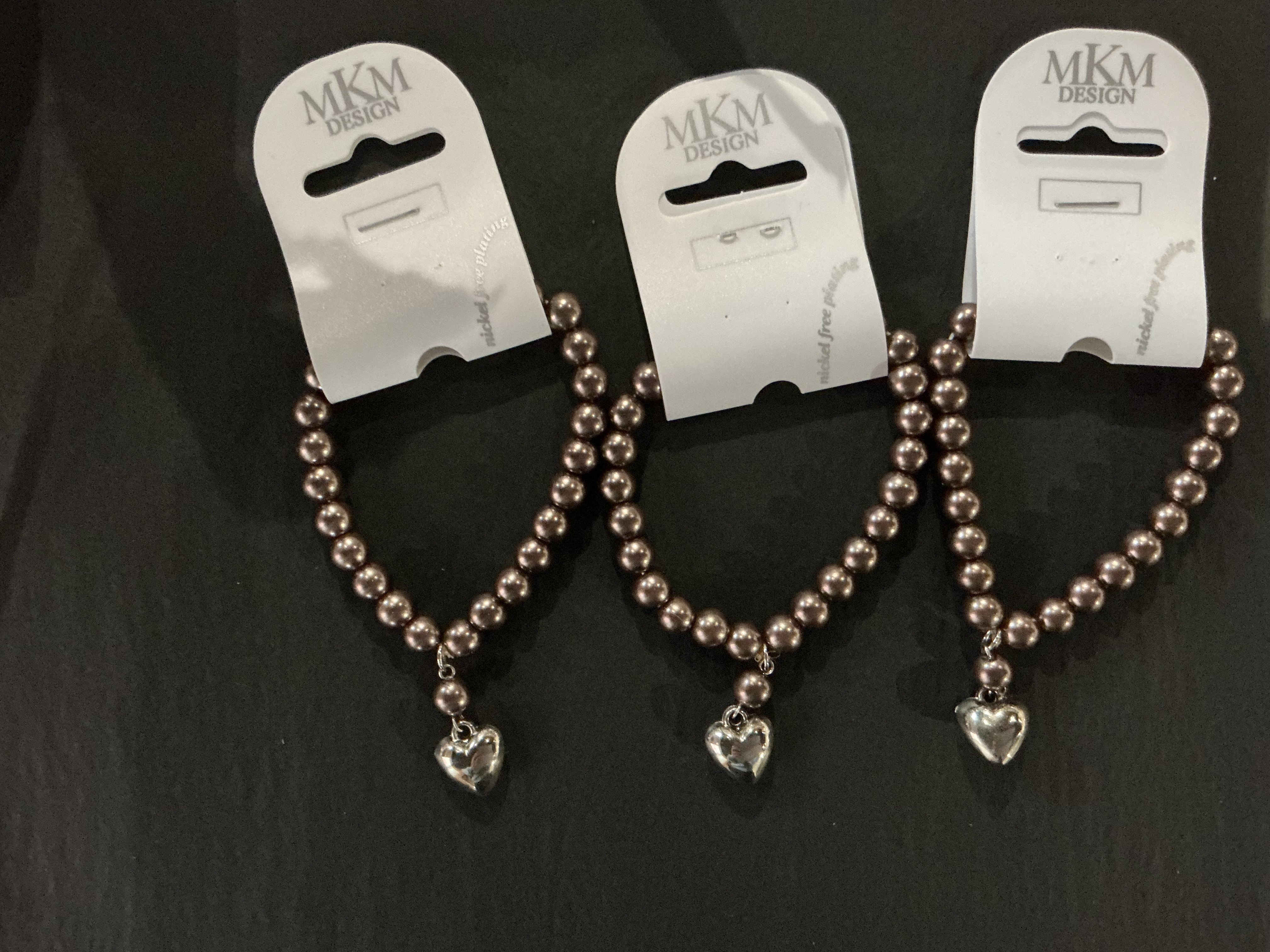 3 prachtige armbanden met parel en een hangertje in de vorm van een hart de armbanden zijn rekbaar...