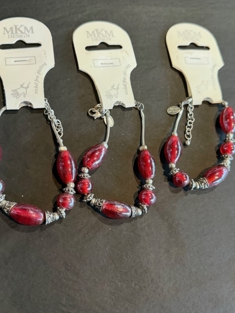 Mooie set van 3 MKM-armbanden met grote rode kralen en zilverkleurige details.armbanden zijn verstelbaar