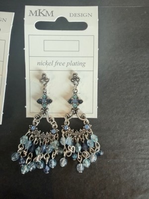 Prachtige, sierlijke oorbellen met een zilverkleurige basis en blauw tinten kralen.